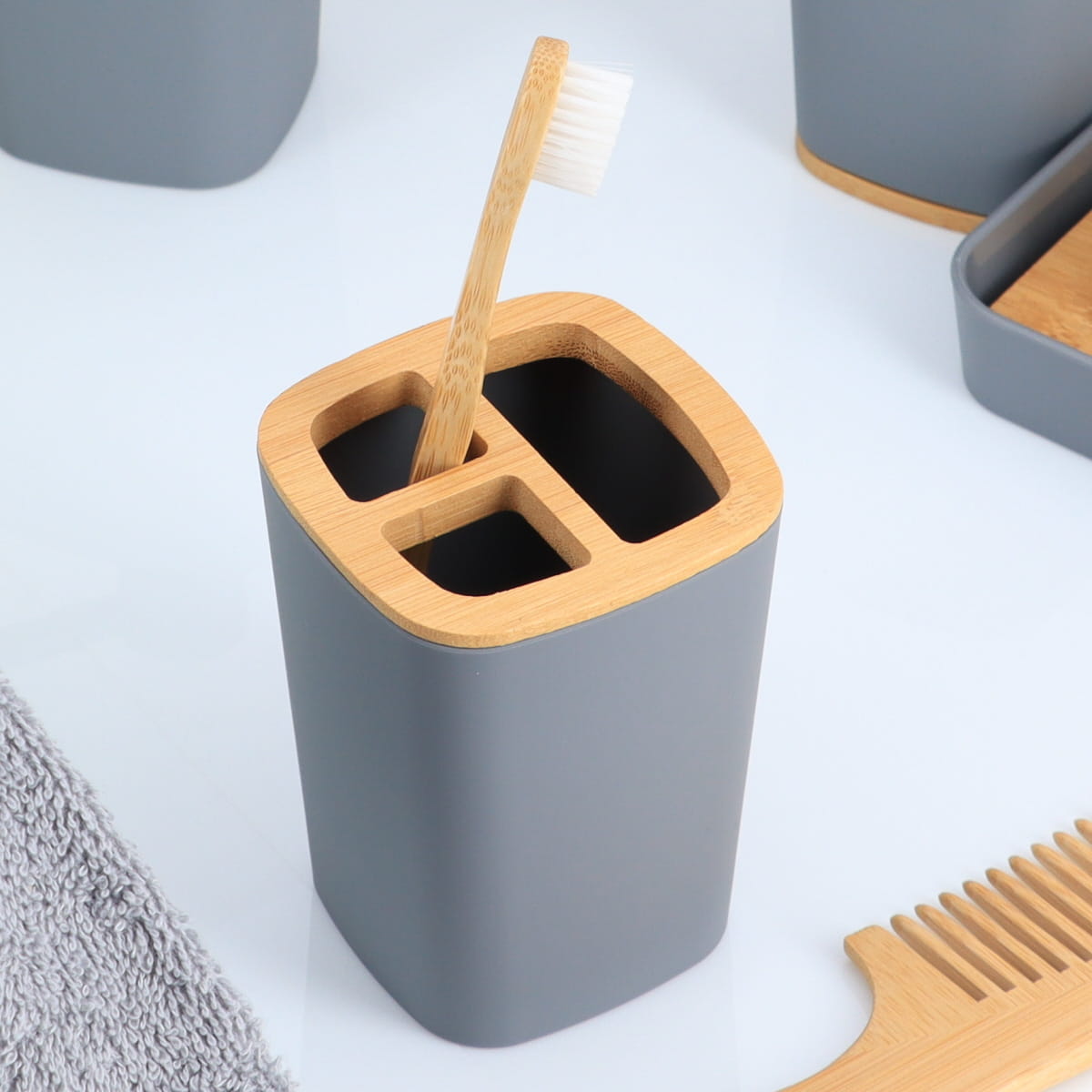 Vierkante tandenborstel organizer bamboe-kunststof grijs-naturel 360ml