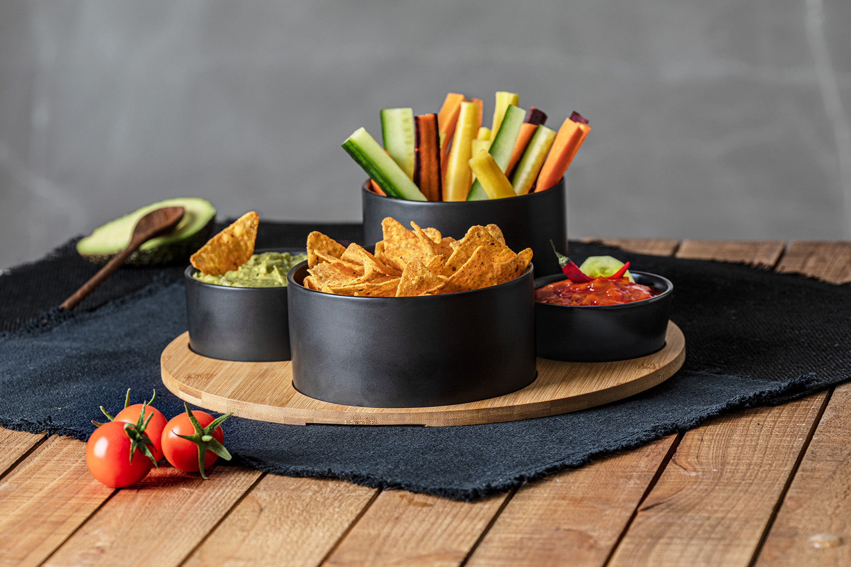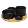 Serveerplank met schalen aardewerk/bamboe 5-delig zwart