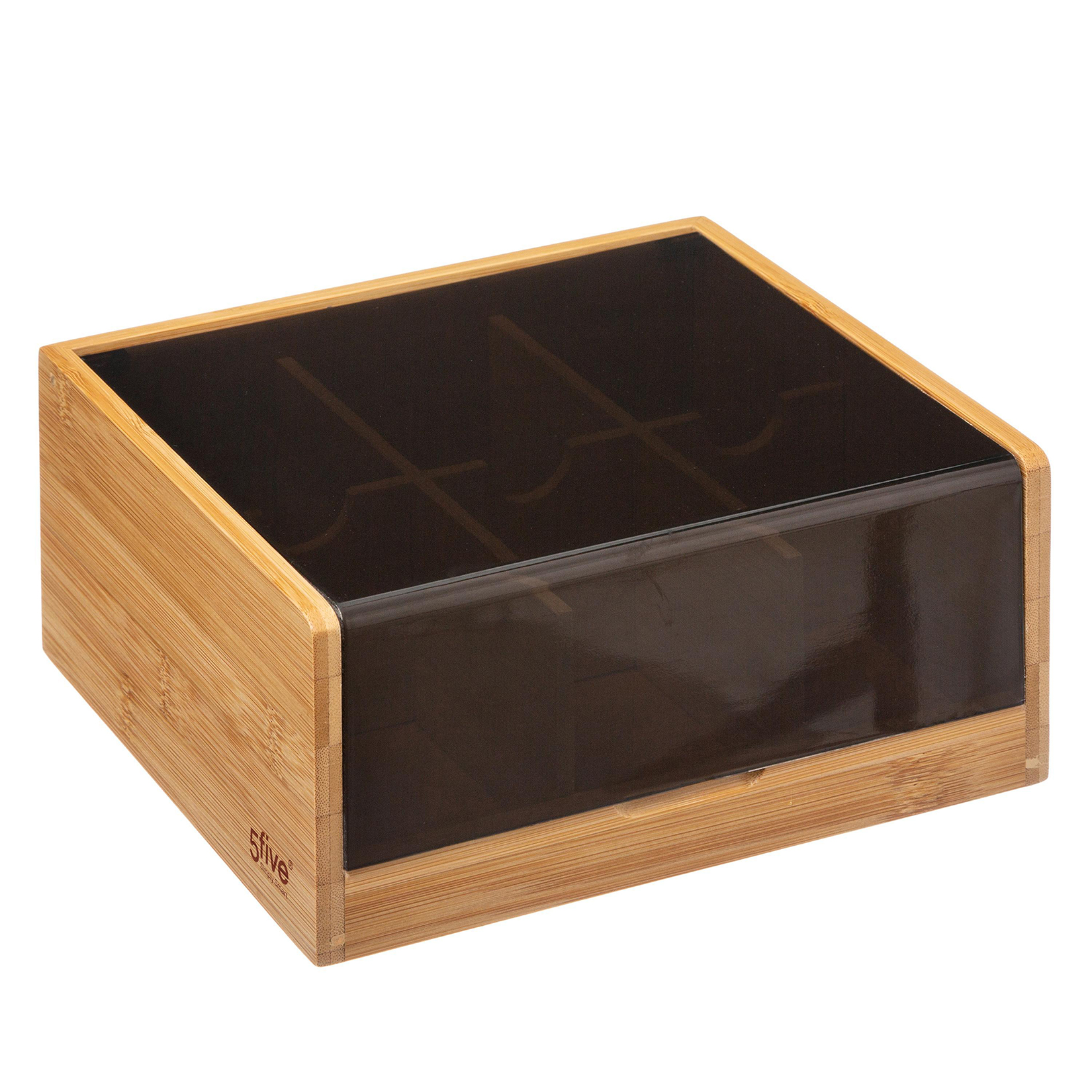 Theedoos bamboe 6 vakken zwart naturel