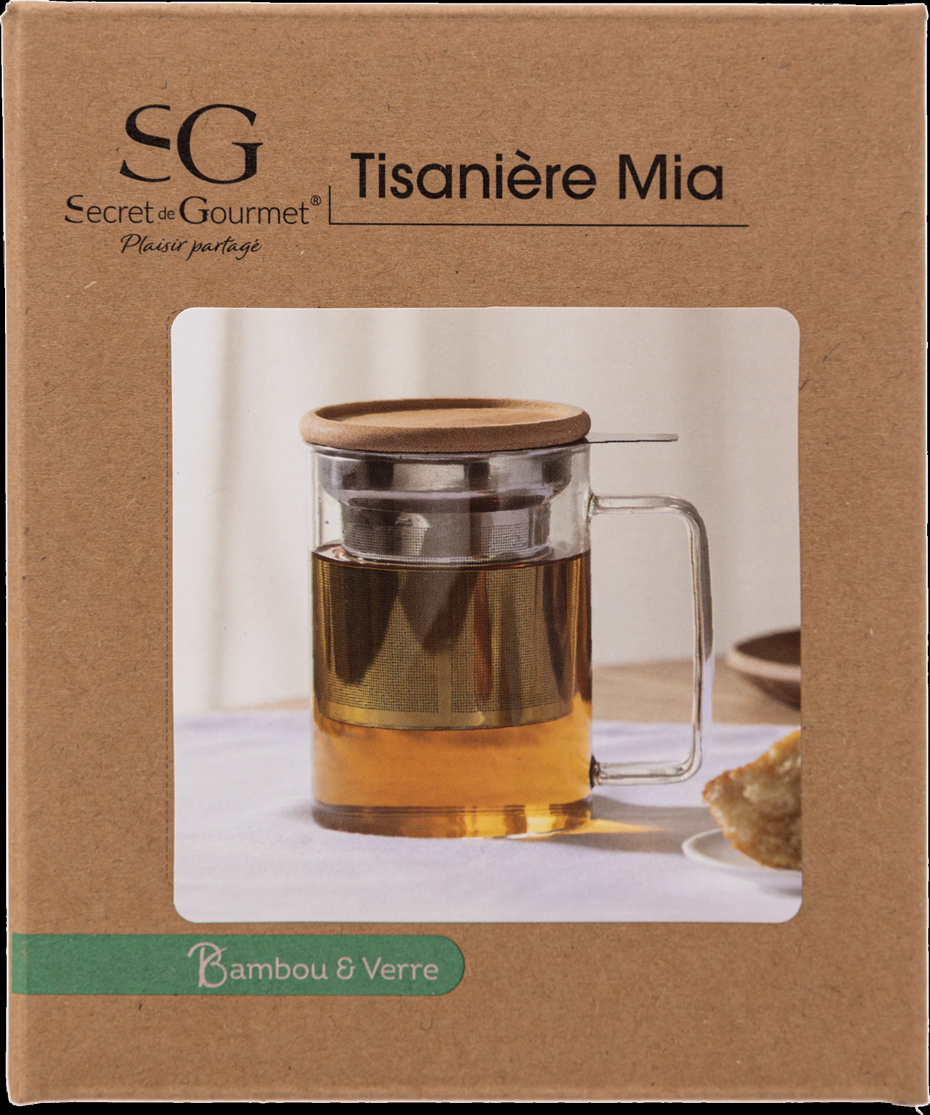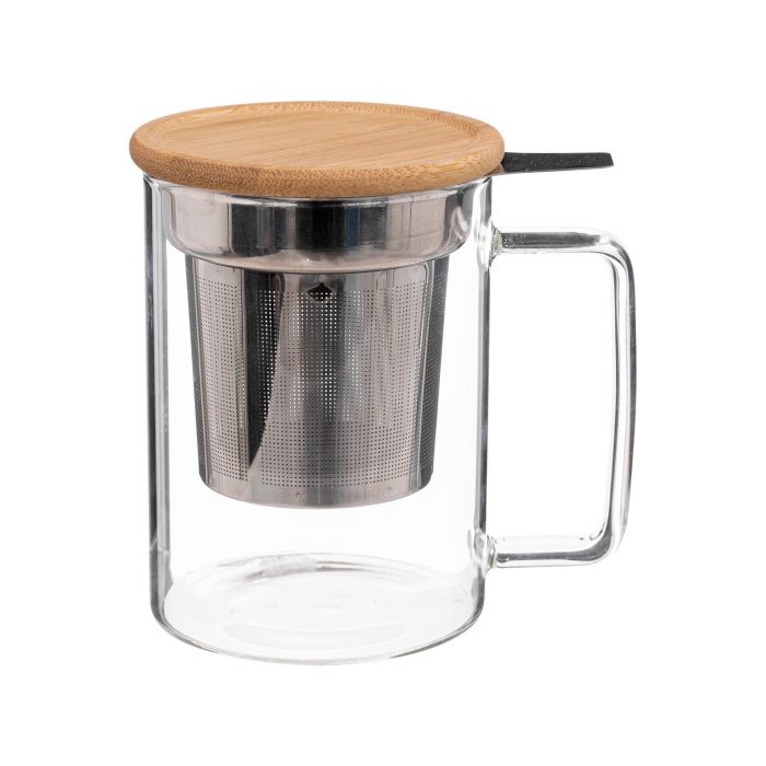 Theeglas met filter/infuser en bamboe deksel MIA 45cl
