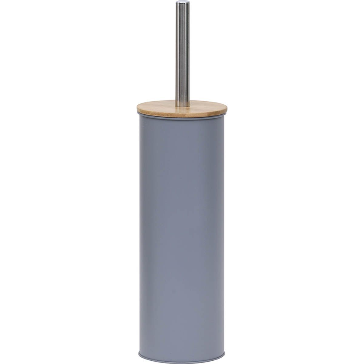 Toiletborstel met houder metaal-bamboe grijs naturel
