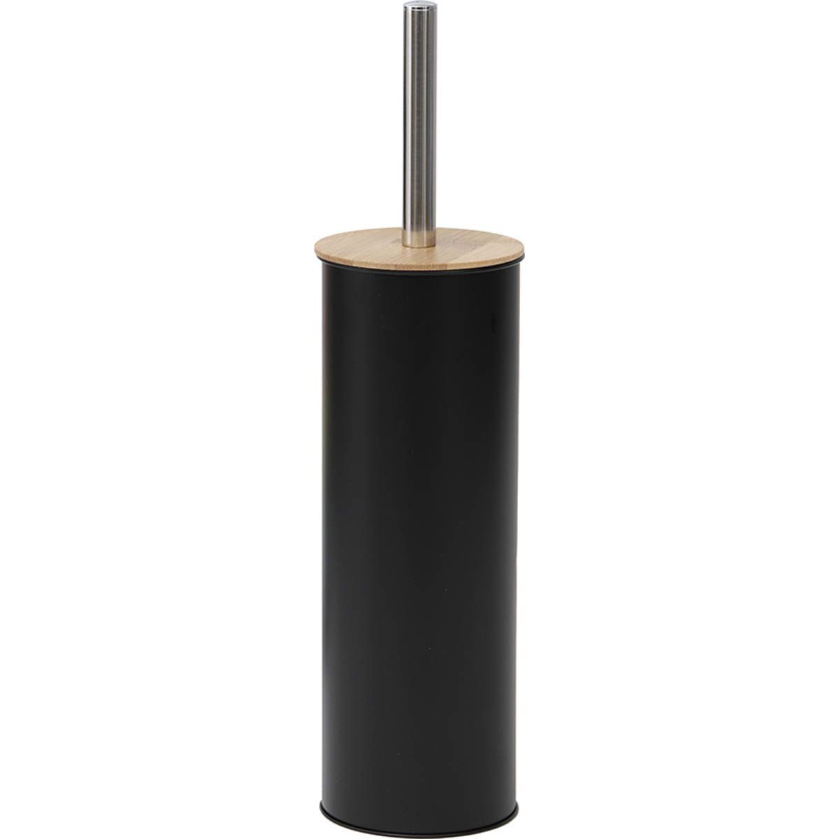 Toiletborstel met houder metaal-bamboe zwart naturel