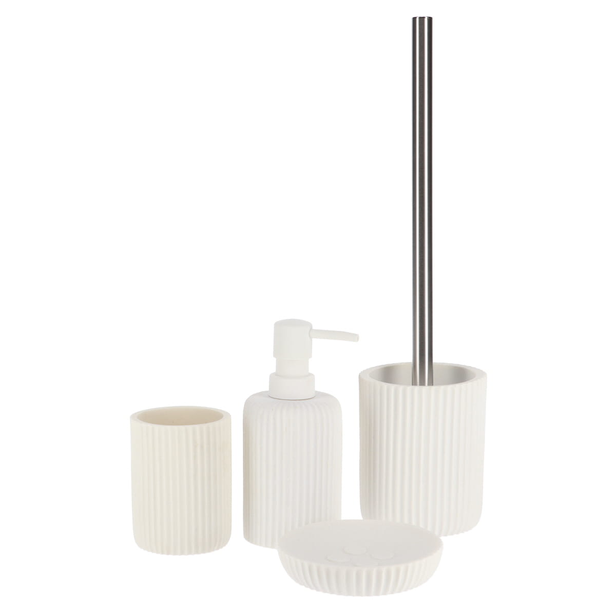 De toiletborstel met polyresin houder wit combineert een tijdloos design met dagelijks gemak. De houder is gemaakt van hoogwaardige polyresin en heeft een subtiele ribbelstructuur, waardoor hij stevig staat en elegant oogt. Bovendien is de stalen borstelsteel slijtvast, terwijl de kunststof borstelkop grondig reinigt. Daardoor blijft je toilet netjes en fris, ook bij intensief gebruik. Dankzij het neutrale wit en zilver past de set moeiteloos bij moderne én natuurlijke badkamers en toilet. Zo voeg je praktische hygiëne toe zonder concessies aan stijl.