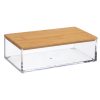 Transparante kunststof opbergbak met bamboe deksel rechthoekig “Selena” 16*9,6*5,1cm. Duurzaam, stijlvol en ideaal voor keuken, badkamer of bureau (Art.code 37737)