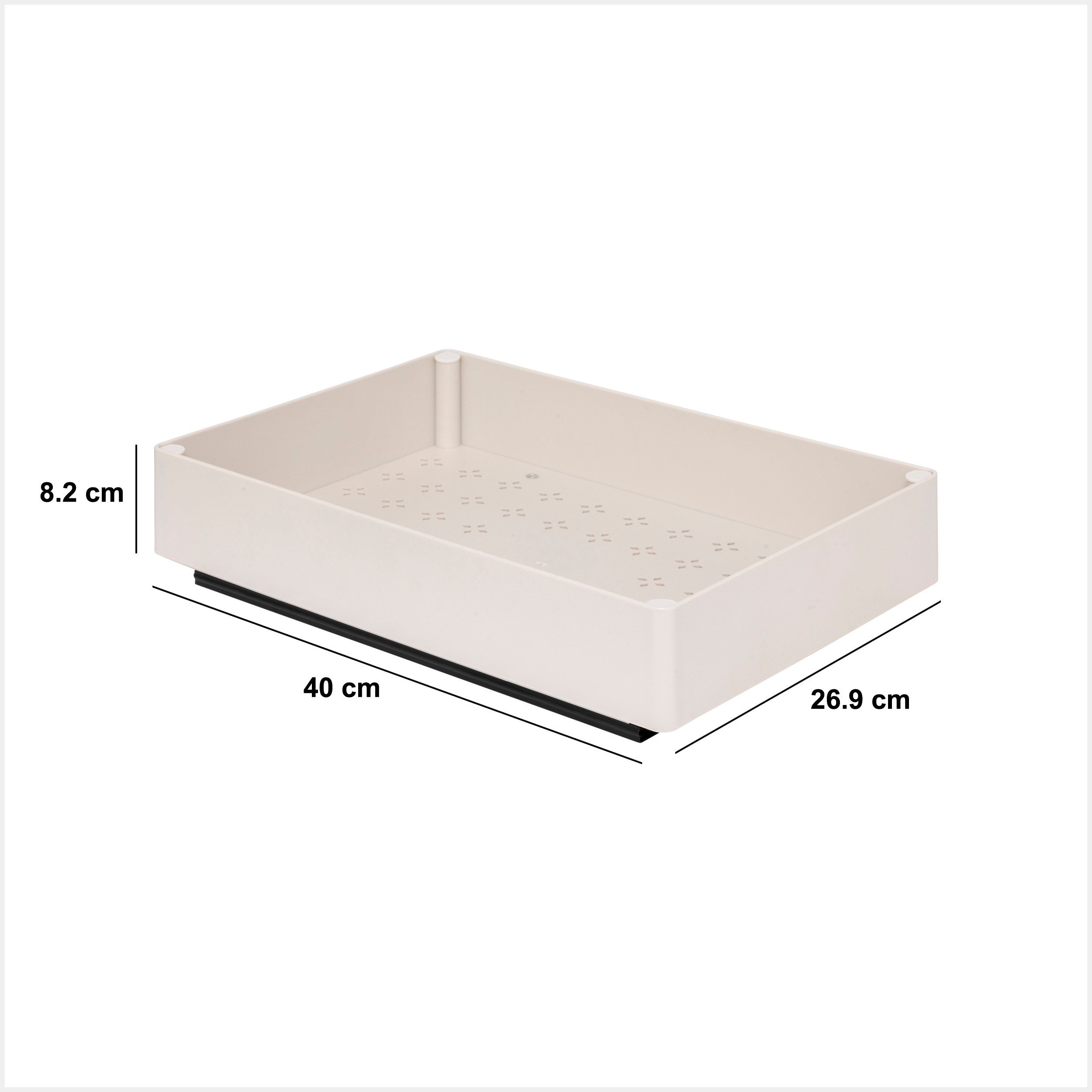 Ook helpt de verhoogde rand om producten stabiel op hun plaats te houden. Terwijl losse items in een kast snel omvallen, blijven ze in deze lade netjes staan. Daardoor blijft je kast georganiseerd en overzichtelijk. Bovendien zorgen de openingen in de bodem voor ventilatie.