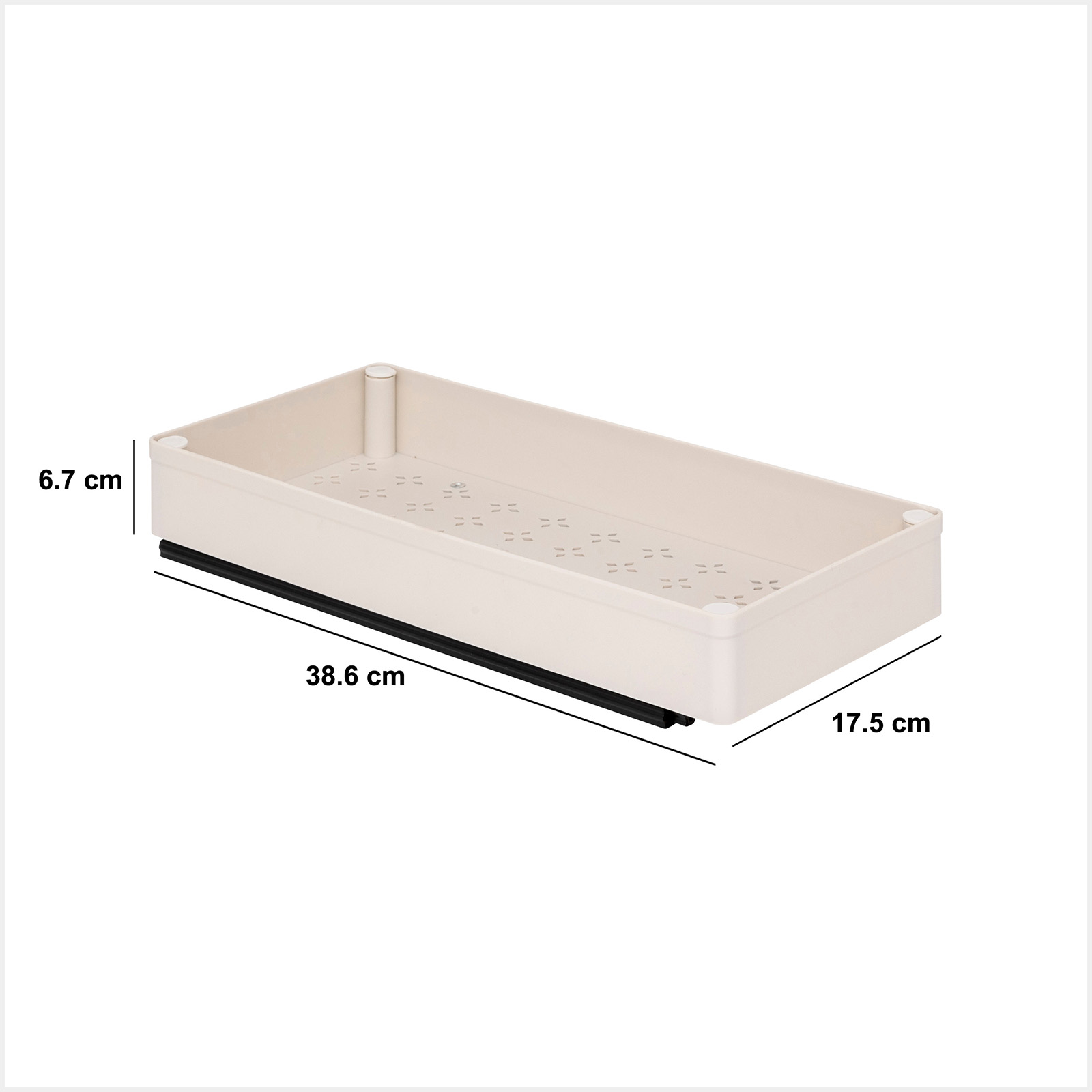 Ook helpt de verhoogde rand om producten stabiel op hun plaats te houden. Terwijl losse items in een kast snel omvallen, blijven ze in deze lade netjes staan. Daardoor blijft je kast georganiseerd en overzichtelijk. Bovendien zorgen de openingen in de bodem voor ventilatie.