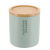 Stijlvolle wattenpot van polyresin met bamboe deksel in een opgeruimde badkamer in Eucalyptus-groen naturel, ideaal voor watjes en kleine accessoires in een opgeruimde badkamer