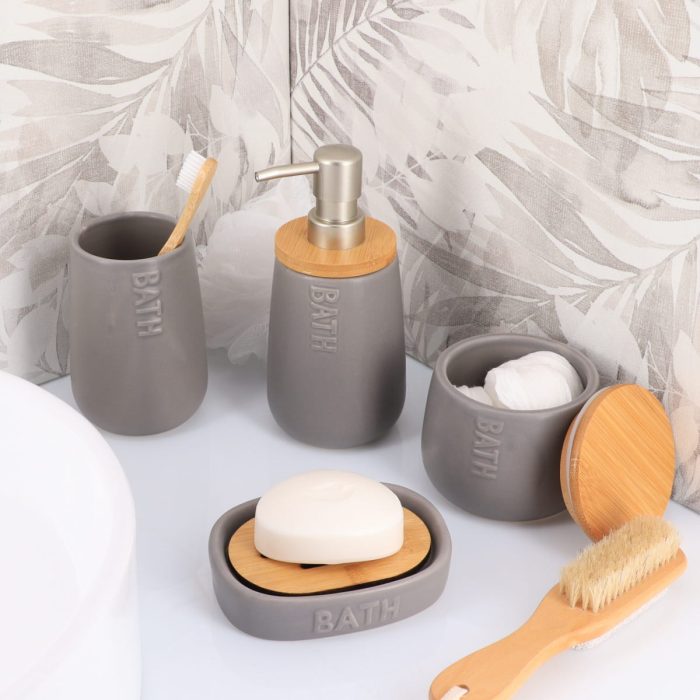 – De deksel van de zeepdispenser is gemaakt van duurzame bamboe. Bamboe is vochtbestendig van aard en is dus zeer geschikt voor gebruik in de badkamer.