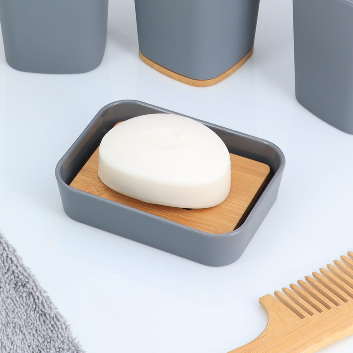 Zeephouder bamboe-kunststof grijs naturel