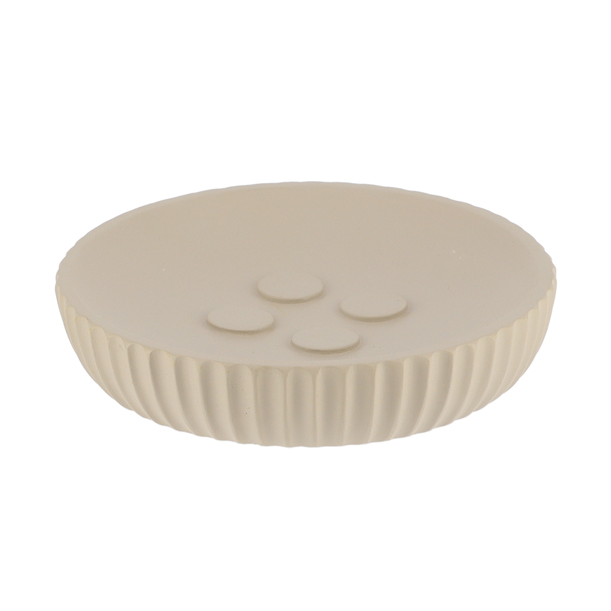 Stijlvolle taupekleurige zeepbakje met geribbelde rand en antislip noppen. Ideaal voor een opgeruimde, moderne en hygiënische badkamer