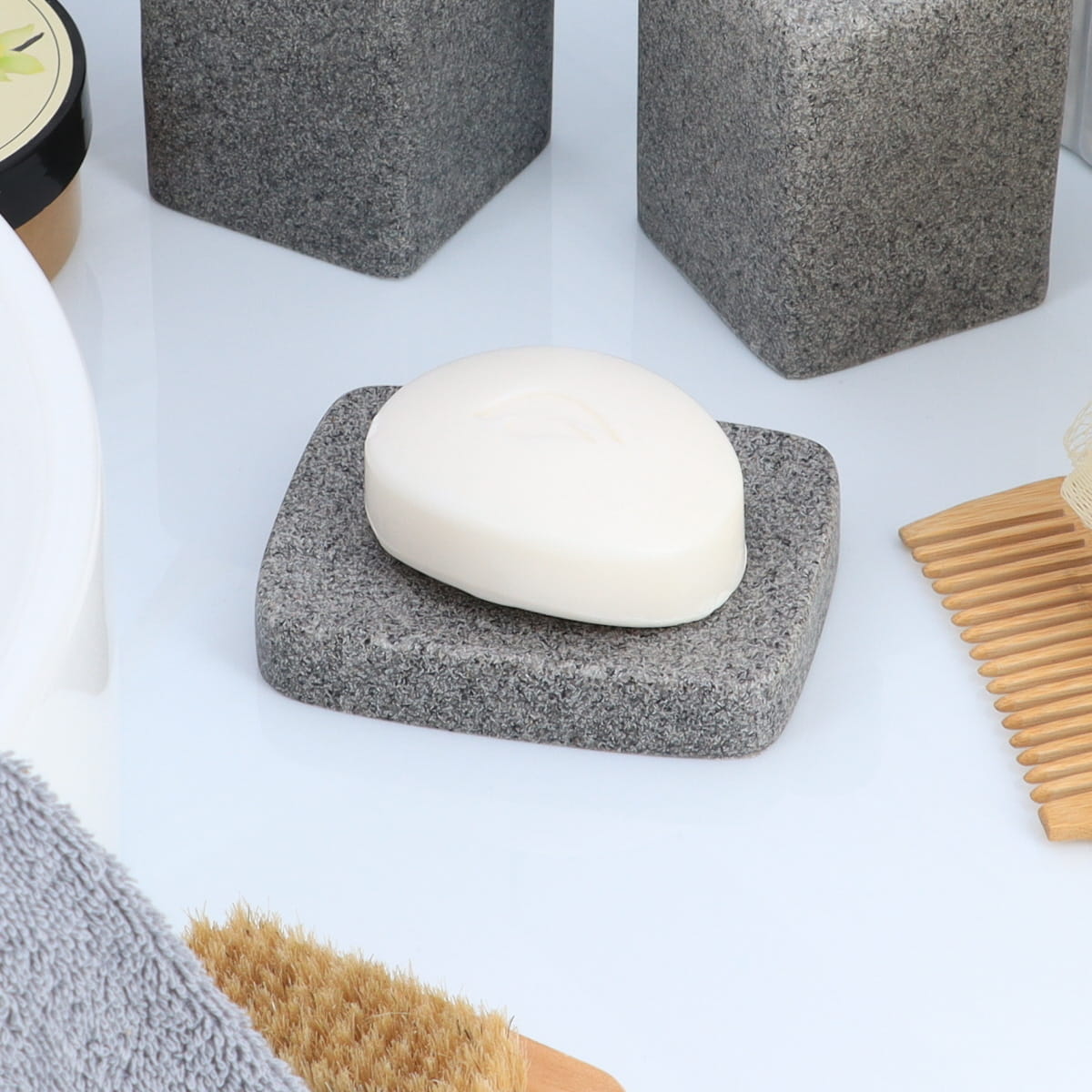 Zeepbak met natuursteen effect polyresin grijs